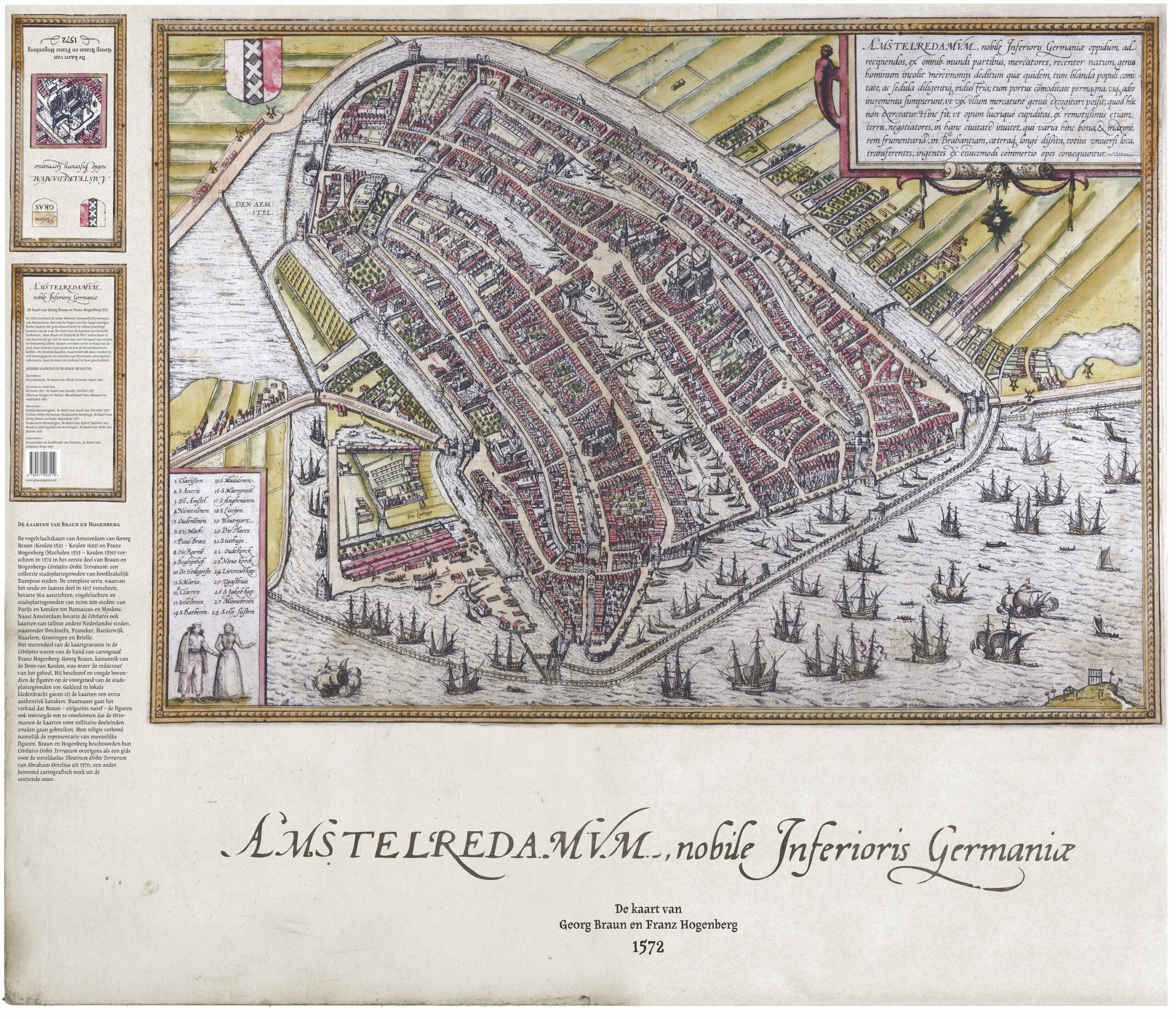 In de vroege zestiende eeuw verscheen de oudst bekende topografische weergave van Amsterdam. De mooiste kaarten, waaronder ook deze van Georg Braun en Franz Hogenberg, worden in stijl heruitgegeven en voorzien van bijzondere achtergrondinformatie. Lees de kaart en verdwaal in haar geschiedenis.